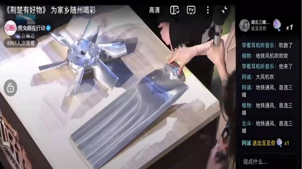 2021年12月17日,我公司在隨州市、廣水市兩級政府的帶領下,參加湖北省電視臺《荊楚有好物》直播帶貨活動,銷售總部部長李永卓代表公司進行直播帶貨。此次活動現場,我公司李永卓部長對公司整體情況進行了介紹,并現場展示了地鐵隧道軸流風機核心部件。該產品主要應用于地鐵、隧道、機場等大型工程,其整體技術達國際先進水平,目前已應用于武漢、成都、深圳、重慶、杭州等多個城市。您在武漢地鐵站吹過的風,大部分都來自“三峰”。